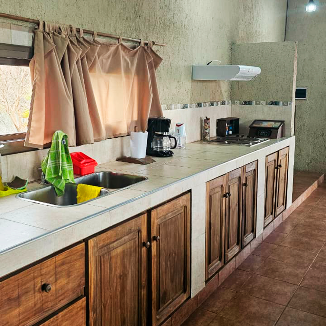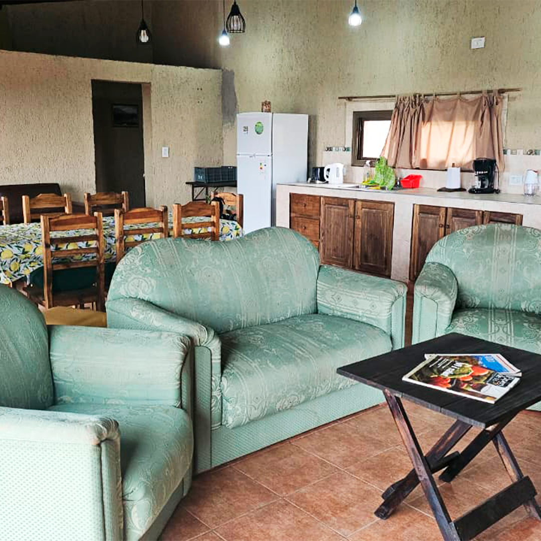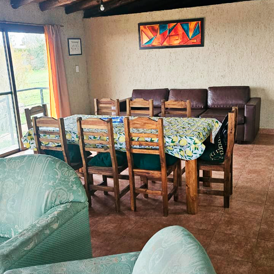 Aire frío calor, pava eléctrica, cafetera, tostadora, microondas, heladera, cocina, vajilla completa, churrasquera y horno a leña. Como así también cochera cubierta, televisión con servicio de Direct TV y Wi-Fi, todo equipado con servicio de blanco.